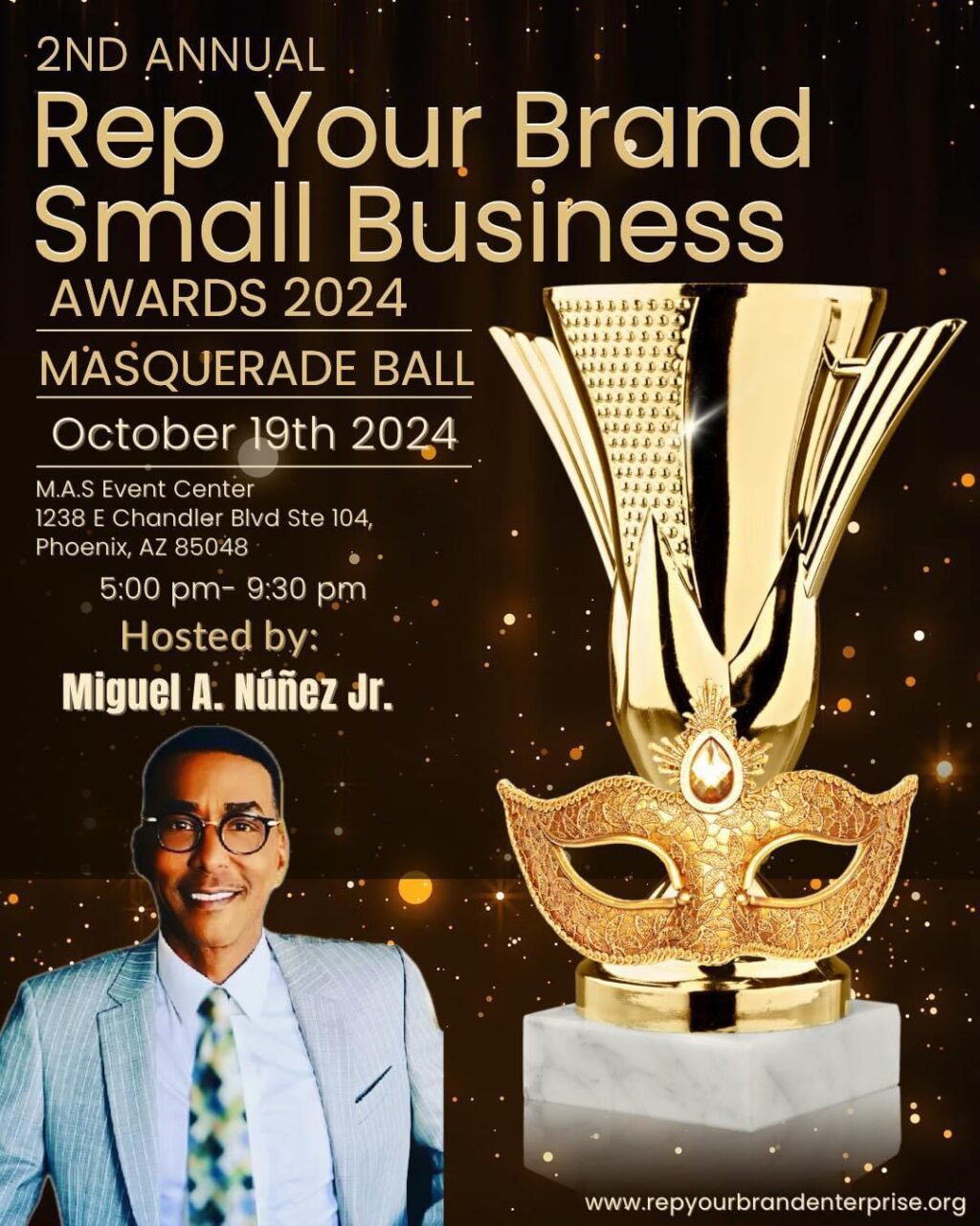 Join us for an unforgettable evening at the 2nd Annual Rep Your Brand Small Business Awards on October 19, 2024, at the M.A.S Event Center in Phoenix, Arizona. This year’s theme, the Masquerade Ball, promises a night of glamour, networking, and celebration of small business excellence.