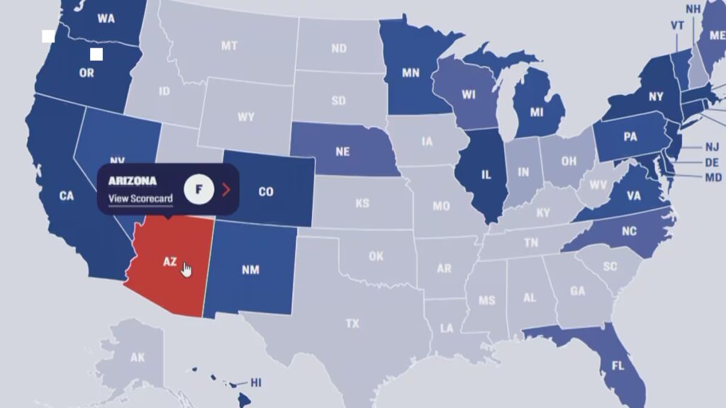 Arizona’s high rate of gun-related deaths underscores the issue. Nichols noted that over 18 people per 100,000 are killed by firearms each year in the state. “When we grade the states, those who get an F often have a very high gun death rate,” she added, emphasizing that this trend consistently appears in their findings.