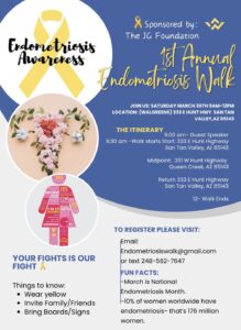 The JG Foundation proudly sponsors the Endometriosis Awareness Walk, marking its inaugural event on Saturday, March 30th, from 9 am...