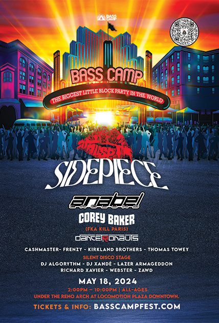 Reno, NV (April 24, 2024) – Bass Camp Festival, a staple in the electronic music and festival scene in Northern Nevada, is thrilled to announce its latest event, ‘The Biggest Little Block Party In The World,’ set to transform Virginia Street under the iconic Reno Arch into an electrifying music and arts haven. This all-ages, one-day extravaganza will take place on Saturday, May 18, from 2:00 PM to 10:00 PM, offering a unique blend of musical performances, art, and community activities in the heart of downtown Reno at Locomotion Plaza.