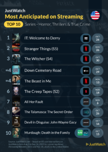 As the nights grow longer, JustWatch unveils the most anticipated horror and thriller series coming to U.S. streaming platforms this...