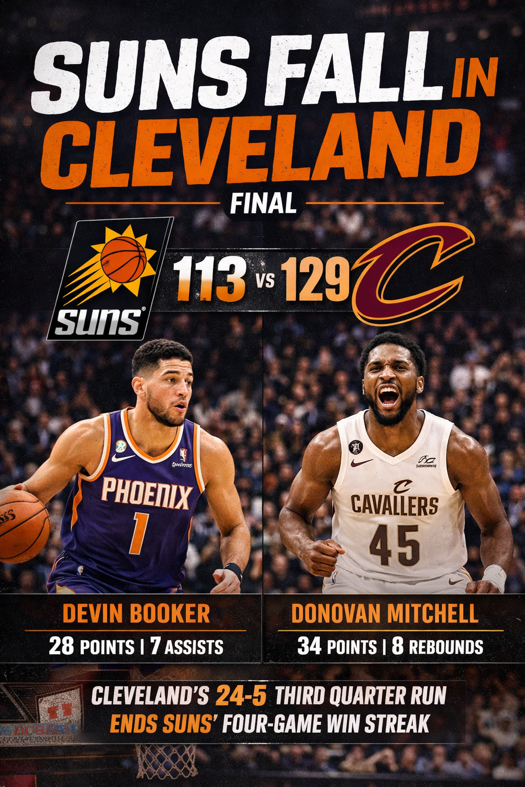 Cleveland Halts Suns’ Momentum With 129–113 Win, Snaps Phoenix Four-Game Streak