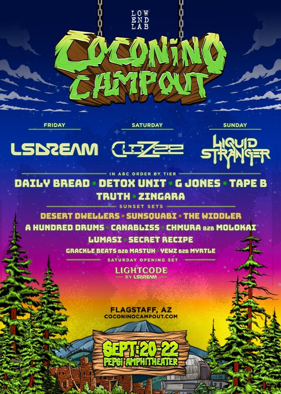 Named after the Coconino National Forest just south of Flagstaff, Coconino Campout will compliment its eclectic lineup of global, national, and regional talent with art and experiential activations, food vendors, and a camping village around the venue’s picturesque ponderosa pine tree “camping in the woods” setting.
