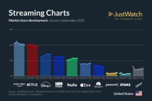 JustWatch is releasing the latest streaming market share report for the United States, analyzing user activity and platform interest during the third quarter of 2025. The following insights are based on aggregated behavior from over 20 million monthly U.S. JustWatch web and app users.