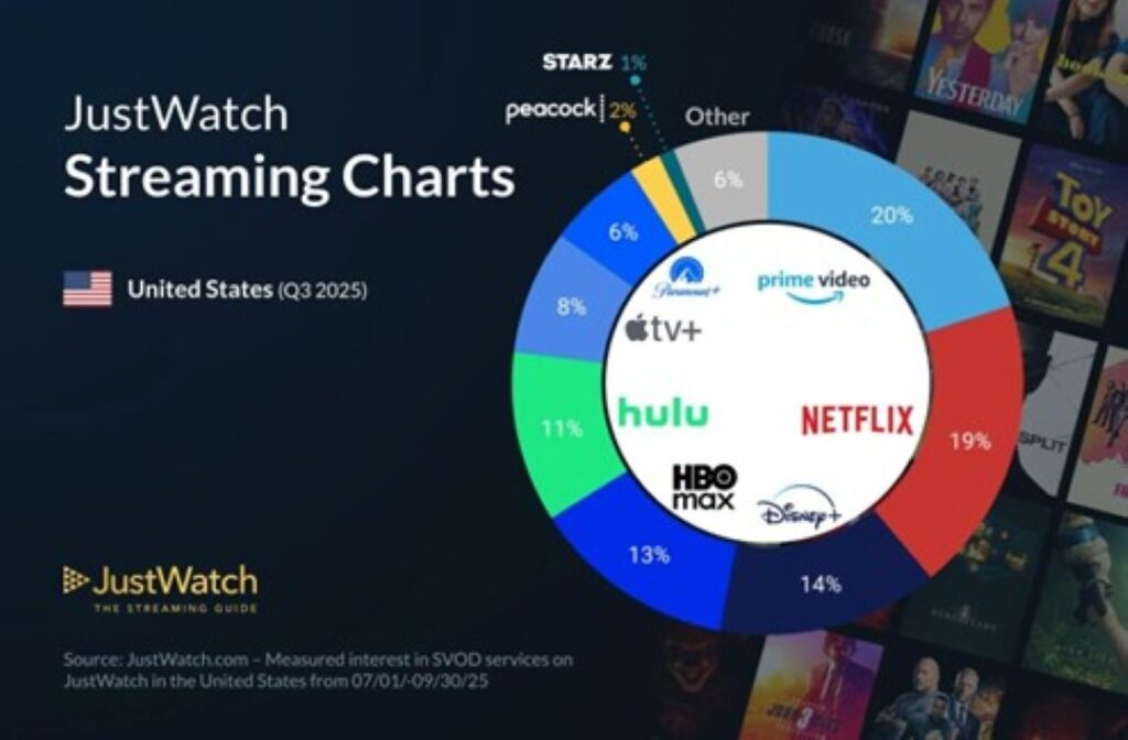 JustWatch is releasing the latest streaming market share report for the United States, analyzing user activity and platform interest during the third quarter of 2025. The following insights are based on aggregated behavior from over 20 million monthly U.S. JustWatch web and app users.