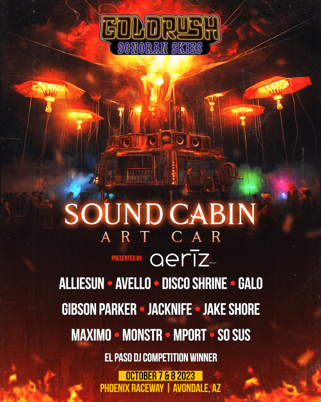 SOUND CABIN ART CAR – presented by Aeriz – soundtracked by the hottest upcoming talent & serving as a central piece of The Highland Cannabis Park…