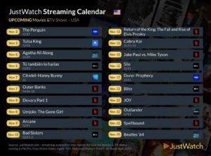 JustWatch Streaming Calendar for November 2024: New Arrivals and Last Chance to Watch