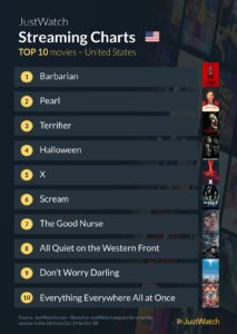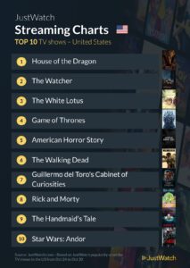 Justwatch just released its weekly list of TV and Streaming data for the last weeks