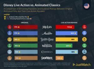 Are the reimagined reboots living up to the originals? As studios continue their trend of releasing live-action remakes of beloved animated films, including the latest adaptation of Lilo & Stitch, streaming guide JustWatch conducted an in-depth analysis to measure how these reboots are resonating with American audiences.