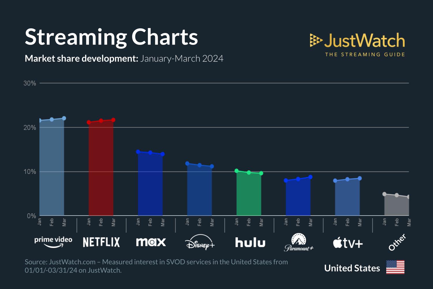 Introduction: As we wrap up the initial quarter of 2024, it’s time to delve into the dynamics of the streaming market in the United States. Our latest data report, derived from user interactions on JustWatch, provides valuable insights into the evolving preferences and trends shaping the industry landscape.