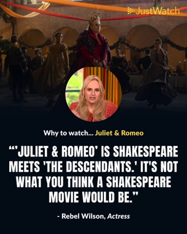 JustWatch’s latest Why to Watch exclusive highlights the vibrant, genre-bending musical adaptation Juliet & Romeo—featuring exclusive quotes from stars Rebel Wilson and Jamie Ward. Released in theaters earlier this month, this bold reimagining of Shakespeare’s classic tragedy blends pop music, modern language, and high-energy choreography into something altogether unexpected.