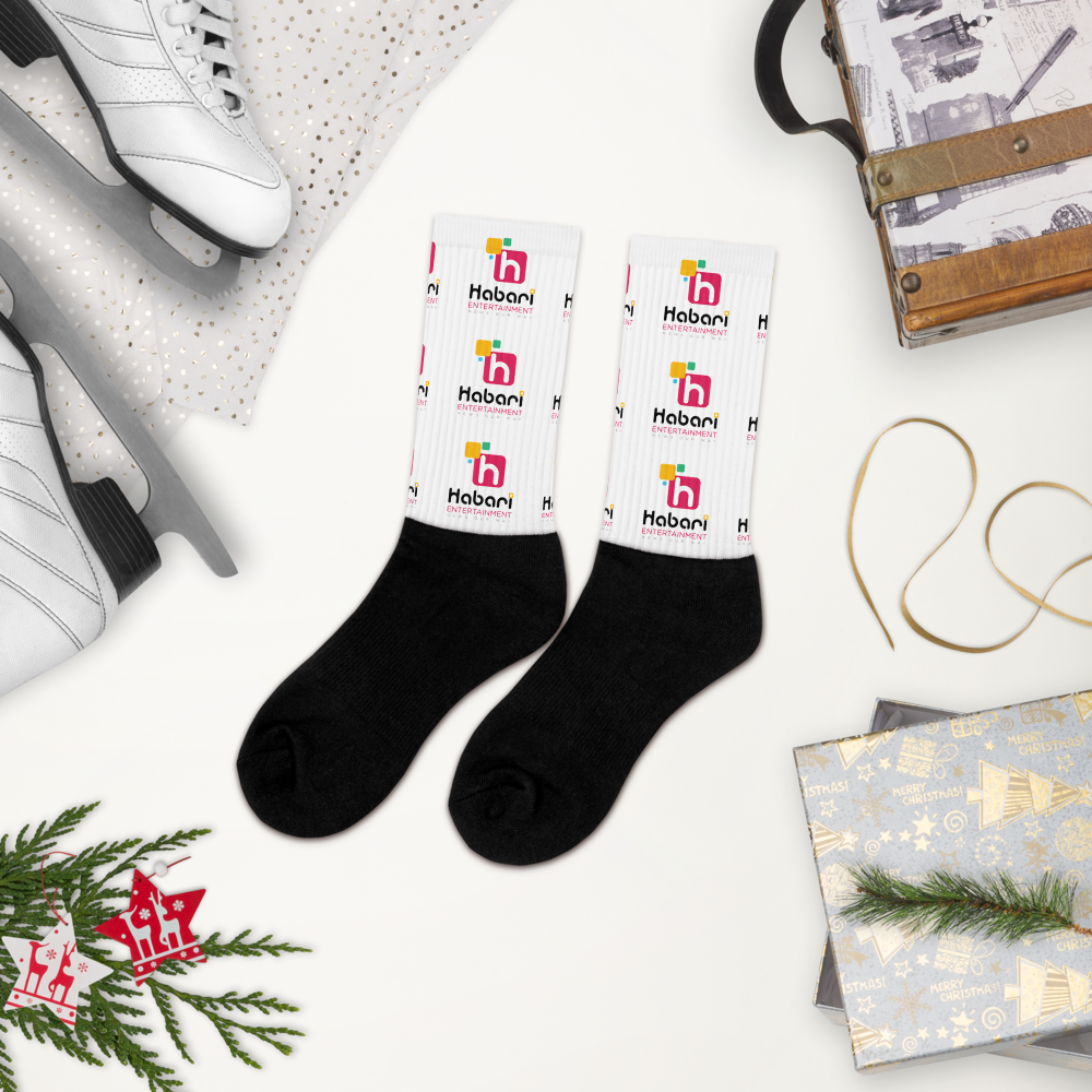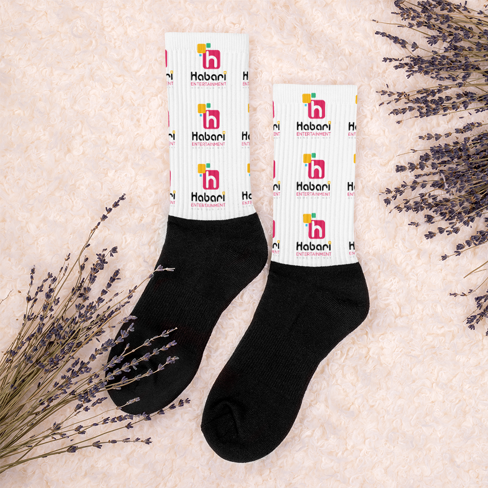 These socks are extra comfortable thanks to their cushioned bottom. The foot is black with artwork printed along the leg with crisp, bold colors that won’t fade.