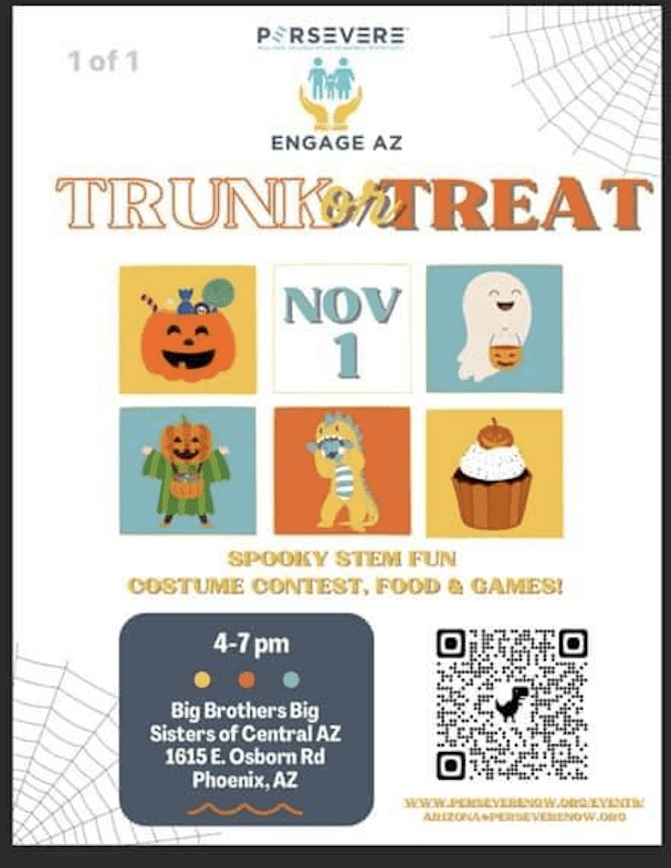 Get ready for an evening filled with spooky STEM activities, a costume contest, and exciting games! Engage AZ and Persevere are teaming up for a fantastic Trunk-or-Treat event on November 1st, offering the perfect post-Halloween celebration for kids and families alike.