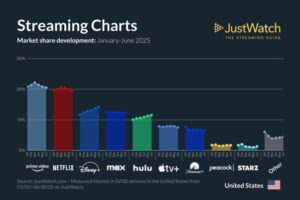 JustWatch is releasing the latest streaming market share report for the United States, analyzing user activity and platform interest during the second quarter of 2025. The following insights are based on aggregated behavior from over 20 million monthly U.S. JustWatch web and app users. Check out our Streaming Charts for more insights into the streaming world, both in the United States and globally.