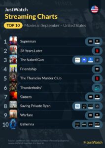 September has been an exciting month for streaming, and the numbers are in! This month, the Man of Steel proved his enduring popularity as Superman clinched the #1 spot on our US Streaming Charts for movies. This surge in interest makes it the perfect time to delve into the world of Metropolis’s greatest hero and his incredibly loyal, super-powered canine companion, Krypto the Superdog.