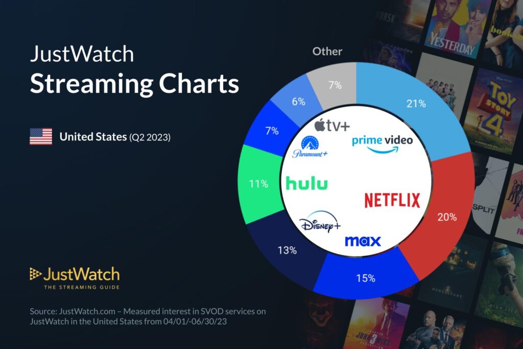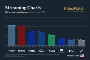 Newly rebranded streaming giant: Max (formerly HBO Max) displays positive development, gaining +1%; Paramount+ also won with a +1% increase in shares. On the other hand, Disney+ and Hulu drop in shares, suffering -1% losses each.