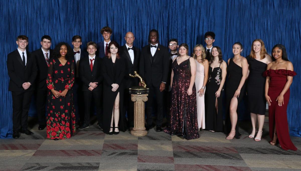 The trophy, presented to each winner, is the most beautiful in college football – it has won several national, juried competitions for design excellence and aesthetic brilliance.