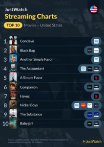 According to the latest JustWatch Streaming Charts, here are the hottest films Americans are tuning into:
