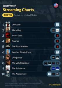 These charts from JustWatch offer a pulse check on what America is watching right now. Whether you’re into suspense, comedy, or character-driven narratives, there’s something on this list worth adding to your queue.