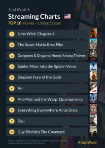 JustWatch released its top ten list for movies and TV shows. Check it out below!