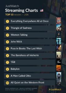 The wait is over. JustWatch has released the top ten list of movies and TV shows. Here they are below.