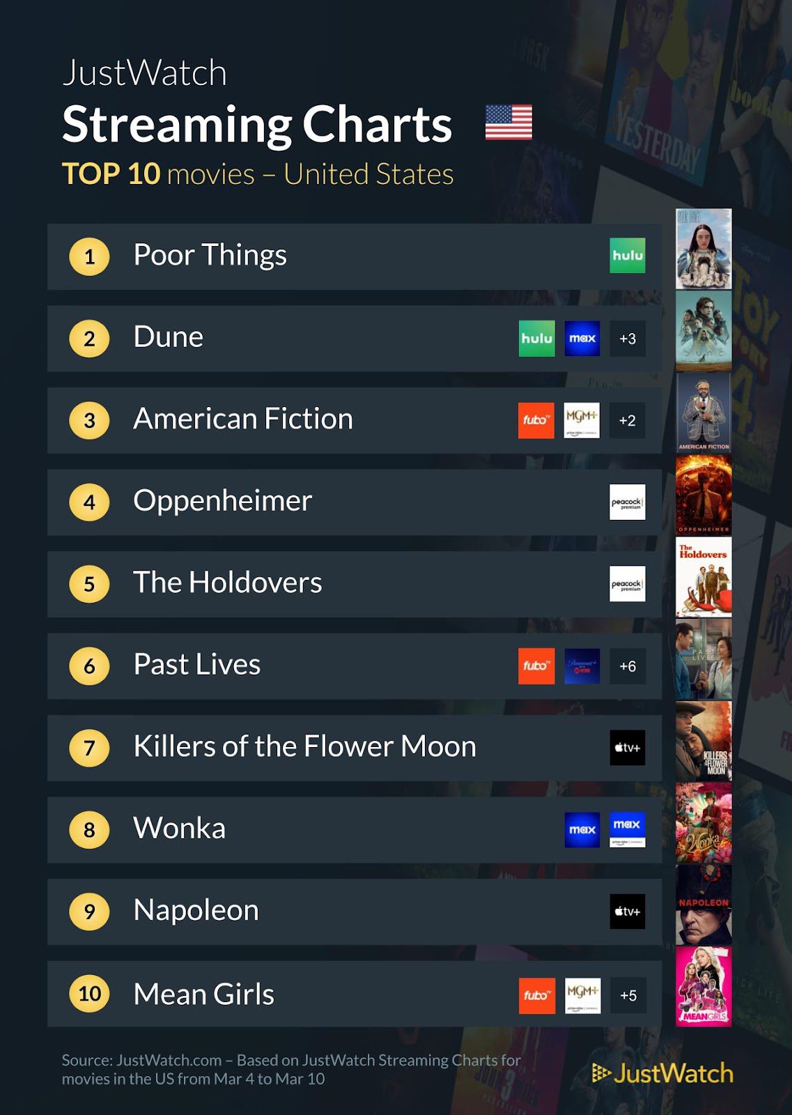 • Rounding out the top ten is the timeless comedy “Mean Girls,” which continues to charm audiences with its sharp wit and relatable characters. As high school drama unfolds, viewers are treated to a hilarious and heartfelt coming-of-age story.