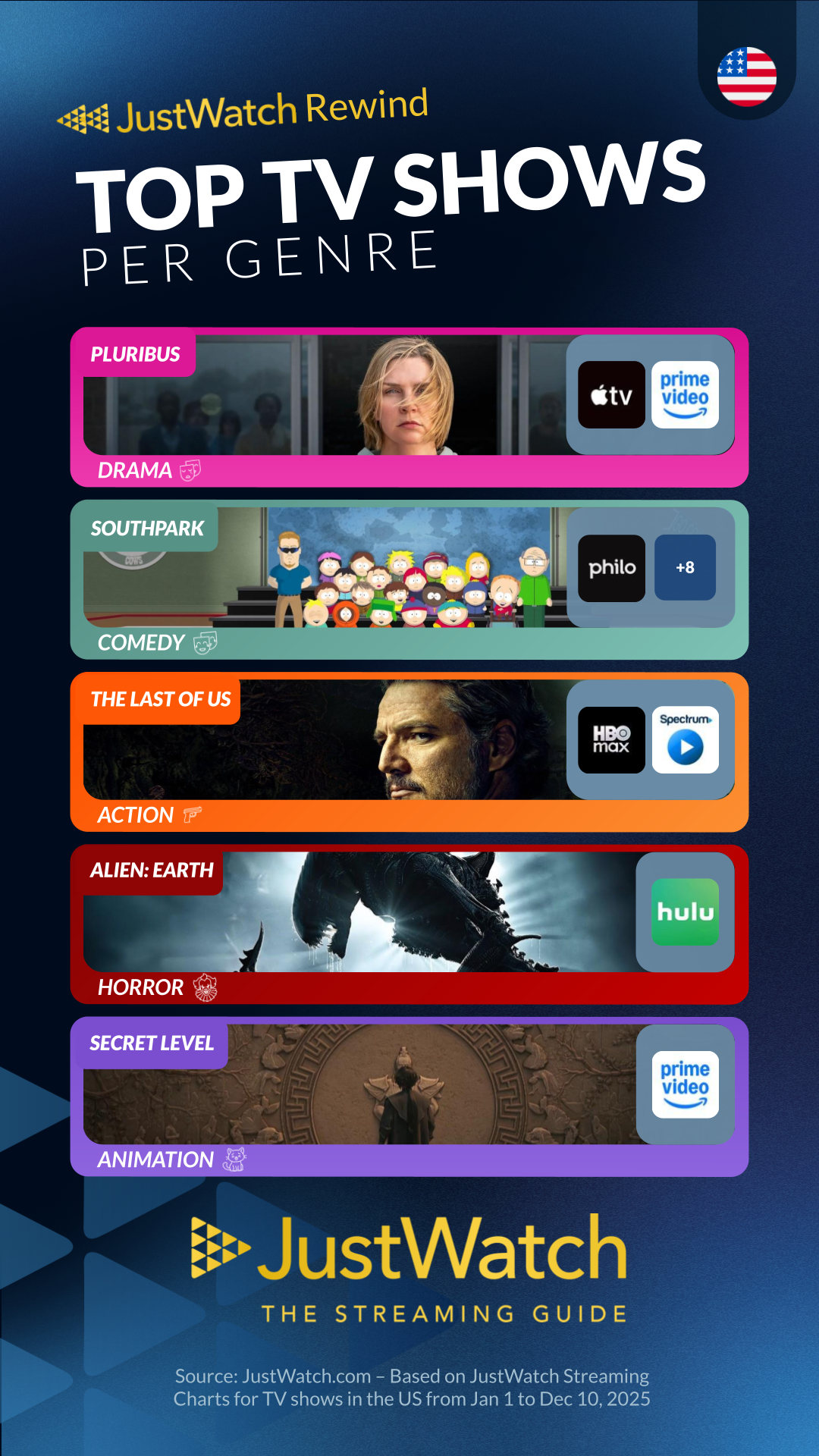 - Sci-Fi Resurgence: The genre surged with titles like Severance, The Last of Us, and Alien: Earth topping the charts.